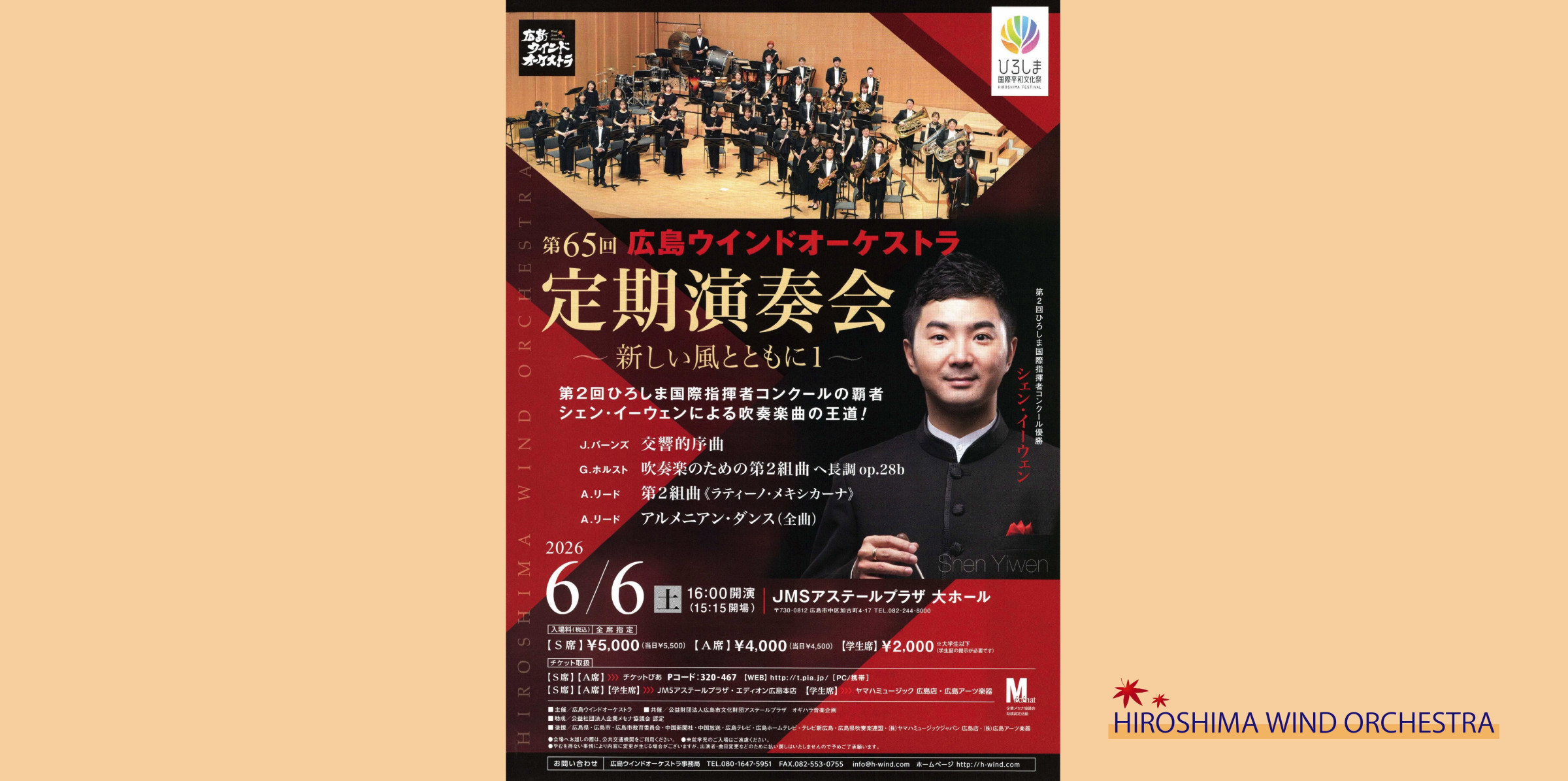 第65回定期演奏会指揮:シェン・イーウェン(第2回ひろしま国際指揮者コンクール優勝)開催日:2026年6月6日(土)16:00開演 JMSアステールプラザ大ホール